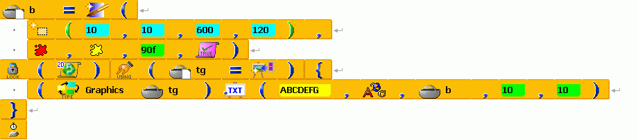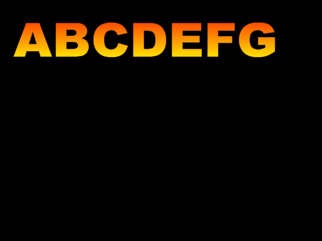 | Vypíše na obrazovku text "ABCDEFG" na zadané souřadnice. Text bude barevný podle vytvořené bitmapy. | | |