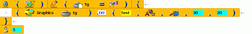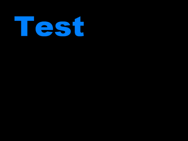 | Vypíše na obrazovku modrý text "Test" na zadané souřadnice pomocí grafiky, vytvořené z Baltíkovy 2D plochy. | | |