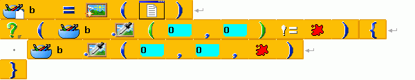 |  | | Nastav barvu bodu bitmapy (For modes 2D, 3D, Console) |  Zobrazit příkladSkrýt příklad | | Zjistí nebo nastaví barvu bod bitmapy na zadaných souřadnicích. | | Vyberete si bitmapu a pokud není pixel v levém horním rohu červený, nastaví se barva pixelu na červenou. | | |