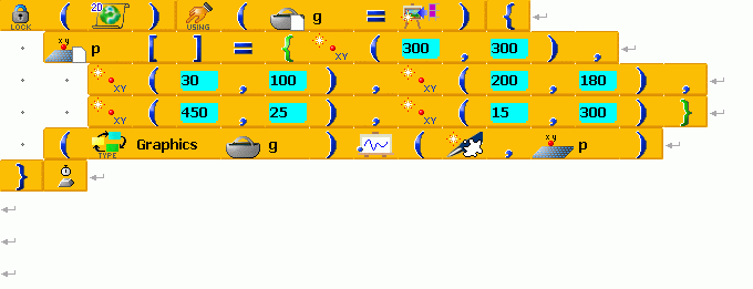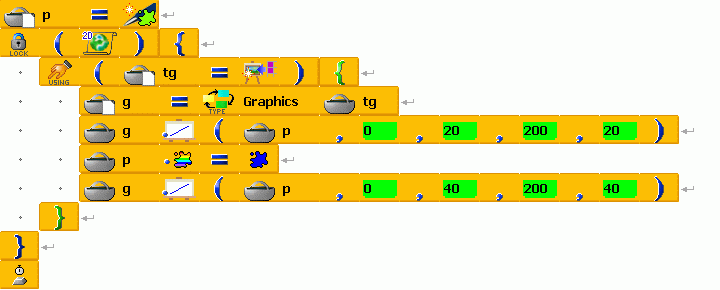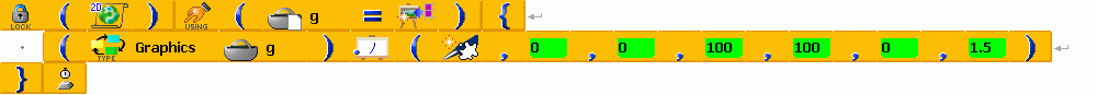 |  | | Kresli čáru na grafiku (For modes 2D, 3D, Console) |  Zobrazit příkladSkrýt příklad | | Vykreslí podle zadaných parametrů čáru na grafiku. |