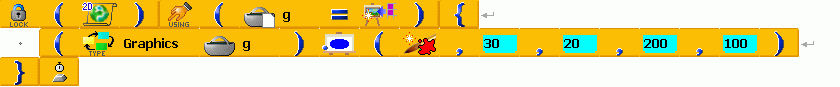 Do závorek za příkaz se vkládají tyto parametry: pero, kterým chcete vykreslit elipsu, bodové souřadnice levého horního rohu obdélníku, kterému bude vepsána elipsa, a výška s šířkou obdélníku, kterému bude vepsána elipsa.