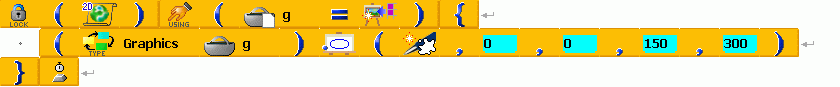 Do závorek za příkaz se vkládají tyto parametry: štětec, kterým chcete vykreslit vyplněnou elipsu, bodové souřadnice levého horního rohu obdélníku, kterému bude vepsána elipsa, a výška s šířkou obdélníku, kterému bude vepsána elipsa.