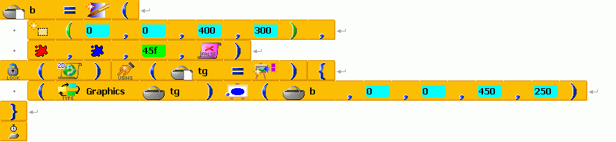 |  | | Jednobarevný štětec (For modes 2D, 3D, Console) |  Zobrazit příkladSkrýt příklad | | Vytvoří jednobarevný štětec se zadanou barvou. | | Vytvoří nový štětec, nastaví jeho barvu na modrou a pak jím udělá obdélník na zadané souřadnice. | | |
