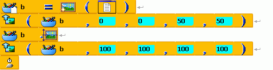 |  | | Změň velikost bitmapy (For modes 2D, 3D, Console) |  Zobrazit příkladSkrýt příklad | | Vytvoří nový obrázek, který je zvětšením či zmenšením zadaného obrázku. | | Změní velikost obrázku vytvořeného z dílku 12 na 50×50 pixelů a poté ho vykreslí na obrazovku. | | |