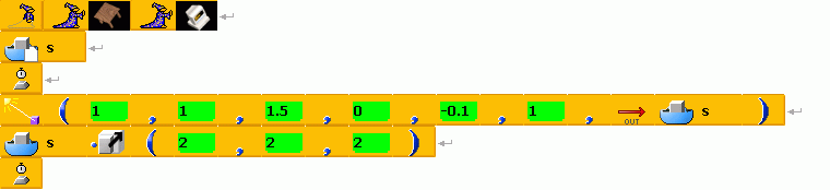 |  | | Změň velikost spritu (For modes 2D, 3D) |  Zobrazit příkladSkrýt příklad | | Vrátí nebo nastaví měřítko velikosti spritu. | | Červený a fialový Baltík se postaví proti sobě. Červený se natáhne do výšky a fialový se smrští. | | |