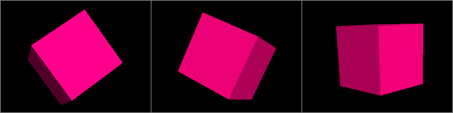 |  | | Orientace 3D (For modes 2D, 3D) |  Zobrazit příkladSkrýt příklad | | Vrátí hodnotu vlastnosti obsahující 3D orientaci. | | Vytvoří barevně vyplněnou krychli. Pak neustále mění její úhel natočení o 2 stupně v každém rozměru relativně k současné poloze. Aby bylo vidět, jak kostka rotuje, je nutné po natočení chvilku počkat. | | |