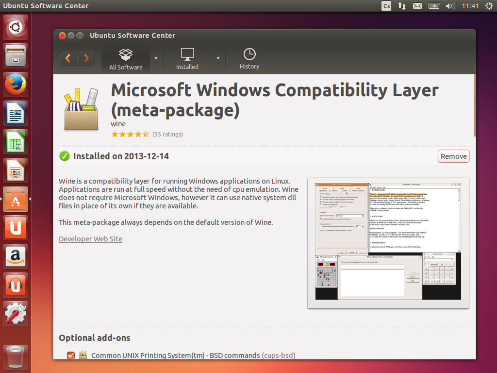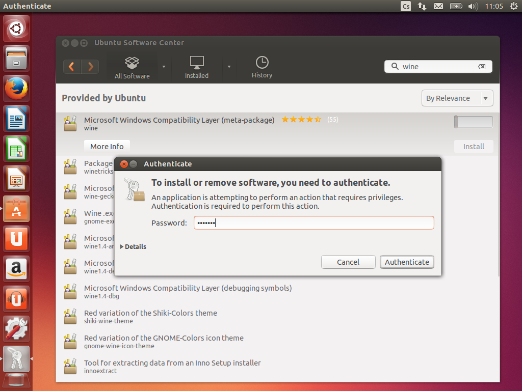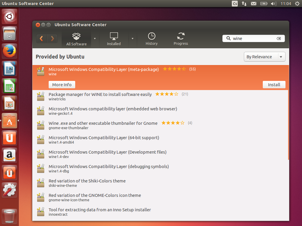 Program Ubuntu Software Center naleznete pouze v Ubuntu. Pokud máte Debain, Raspbian, Mint, nebo jinou distribuci postavenou na Debianu, použijte Synaptic Package Manager. Pokud máte Fedoru, použijte PackageKit. Instalace z terminálu pomocí apt-get bude fungovat i na distribucích postavených na Debianu. Ve Fedoře použijte su -c "yum install wine"