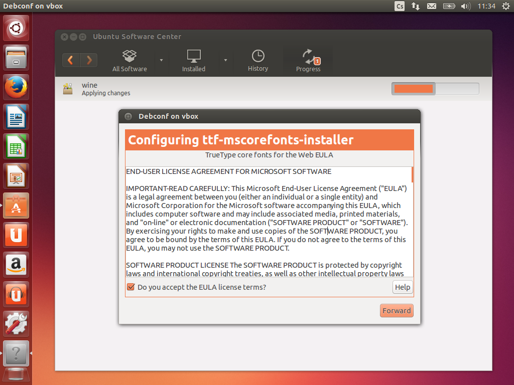 Balíček Wine obsahuje některá písma z Windows. Budete muset potvrdit EULA od Microsoftu, která se vztahuje na tyto písma.