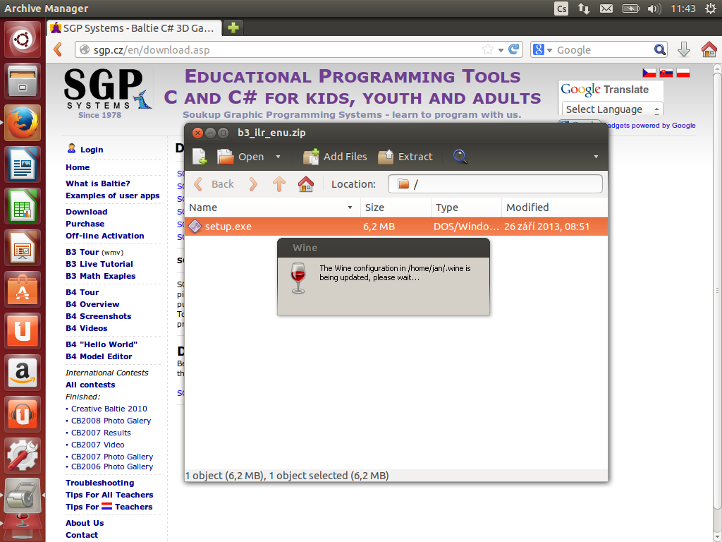 If this is the first Windows program you are starting, you will have to wait a few seconds till Wine environment gets configured. After that, Baltie 3 installator will appear, proceed and finish the installation.