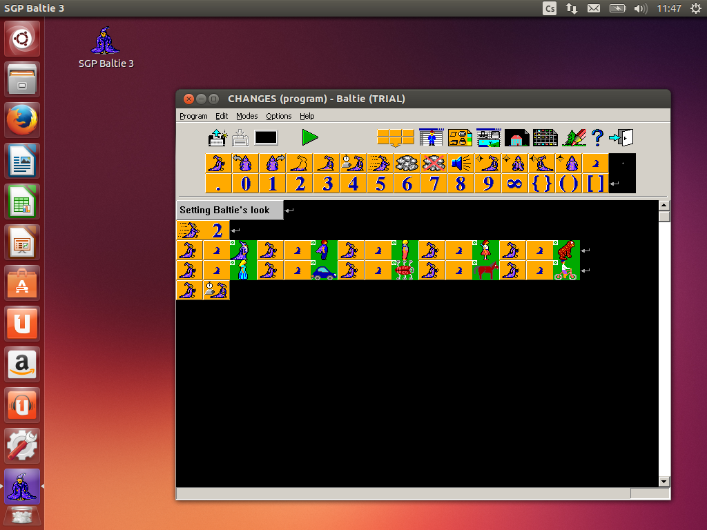 When the installation is finished, Baltie icon will appear on the desktop. You can start it from there. If you do not want the icon on desktop, feel free to delete it. Baltie in also available in the application menu, including all example programs.